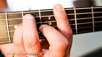 E snaar - 4 vinger op vierde fret (dikste snaar)