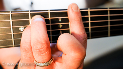 E snaar - 4 vinger op vierde fret (dikste snaar)