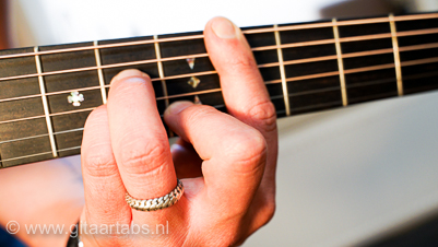 e snaar - 4 vinger op vierde fret (dunste snaar)