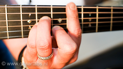 e snaar - 6 vinger op zesde fret fret (dunste snaar)