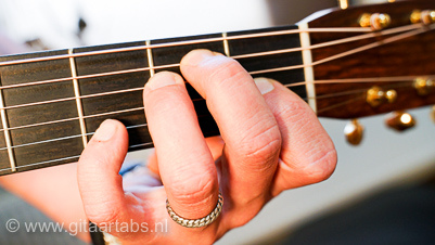 In het akkoorddiagram zijn de tekens X en O opgenomen. De X betekend dat je deze snaar niet aanslaat. De O betekend dat je op deze snaar geen vinger zet maar wel aanslaat. In gitaartermen noemen we dit een open snaar.