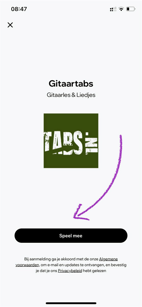 Via onderstaande stappen kan je Gitaartabs gebruiken vanuit de app registratie.